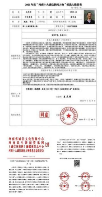 《诚信河南》专题报道时代楷模,优秀共产党员,河南十大诚信人物,疑难杂症专家——王庆祥